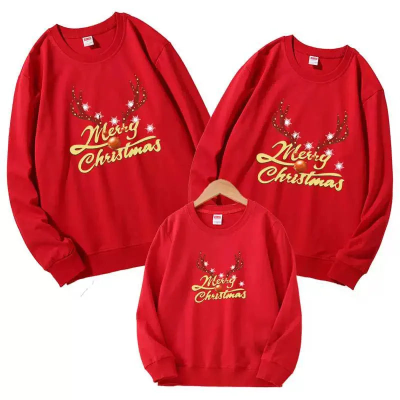 Hergestellt aus hochwertiger, weicher Strickware mit detailreichen Jacquard-Mustern, sorgt dieser Look für angenehme Wärme und Bewegungsfreiheit. Ideal für Familienfeiern, winterliche Spaziergänge oder festliche Fotos, bei denen Zusammenhalt und Freude spürbar werden.